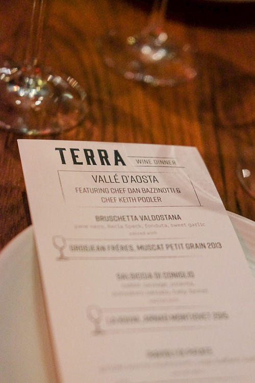 The wine dinner, located at Terra inside of Eataly Boston, highlighted the area of Vallé D’Aosta which is located in the North West region of Italy.