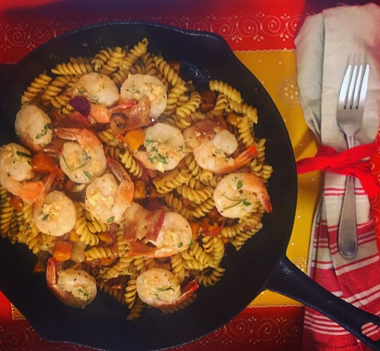This dish can definitely be made with just the bacon and the squash, but if you want to add a little extra protein without making the dish feel so “heavy,’ shrimp is the way to go.